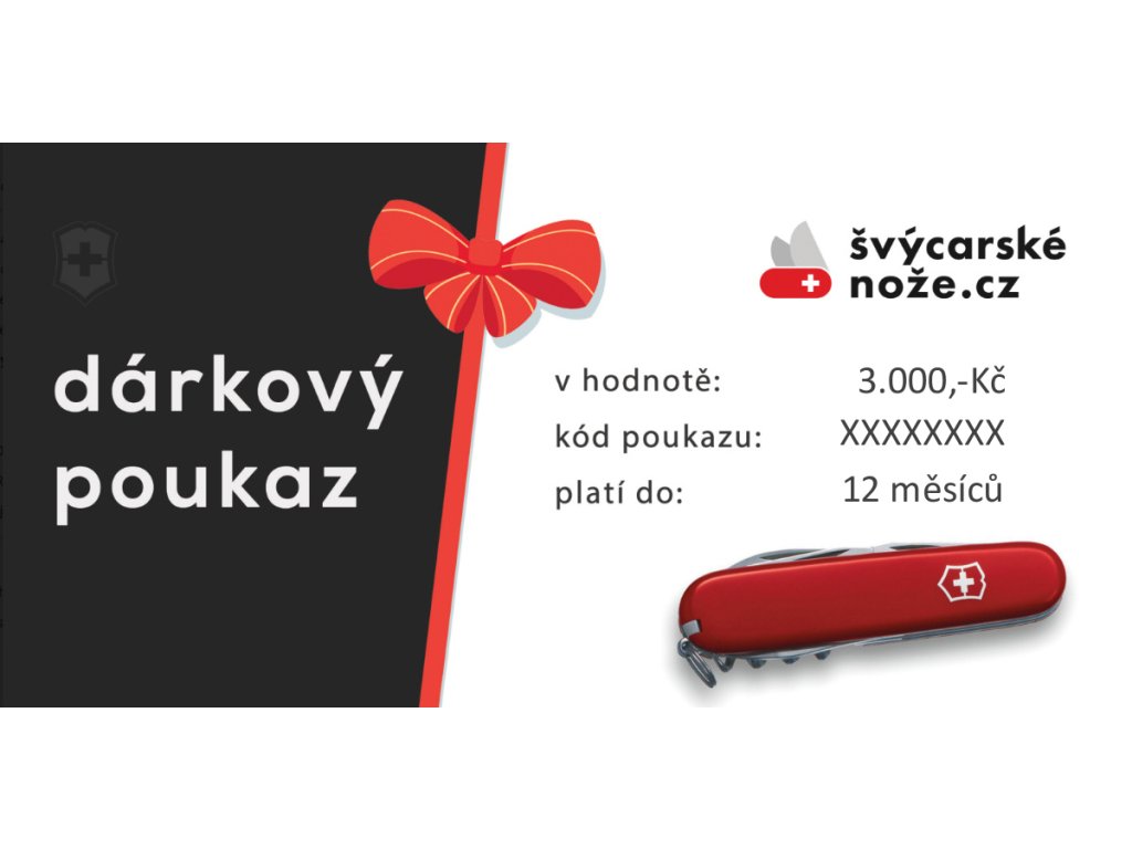 Dárkový poukaz v hodnotě 3.000,-Kč k nákupu veškerých produktů na našem partnerském eshopu SVYCARSKENOZE.CZ, s platnotí 12 měsíců d data nákupu.