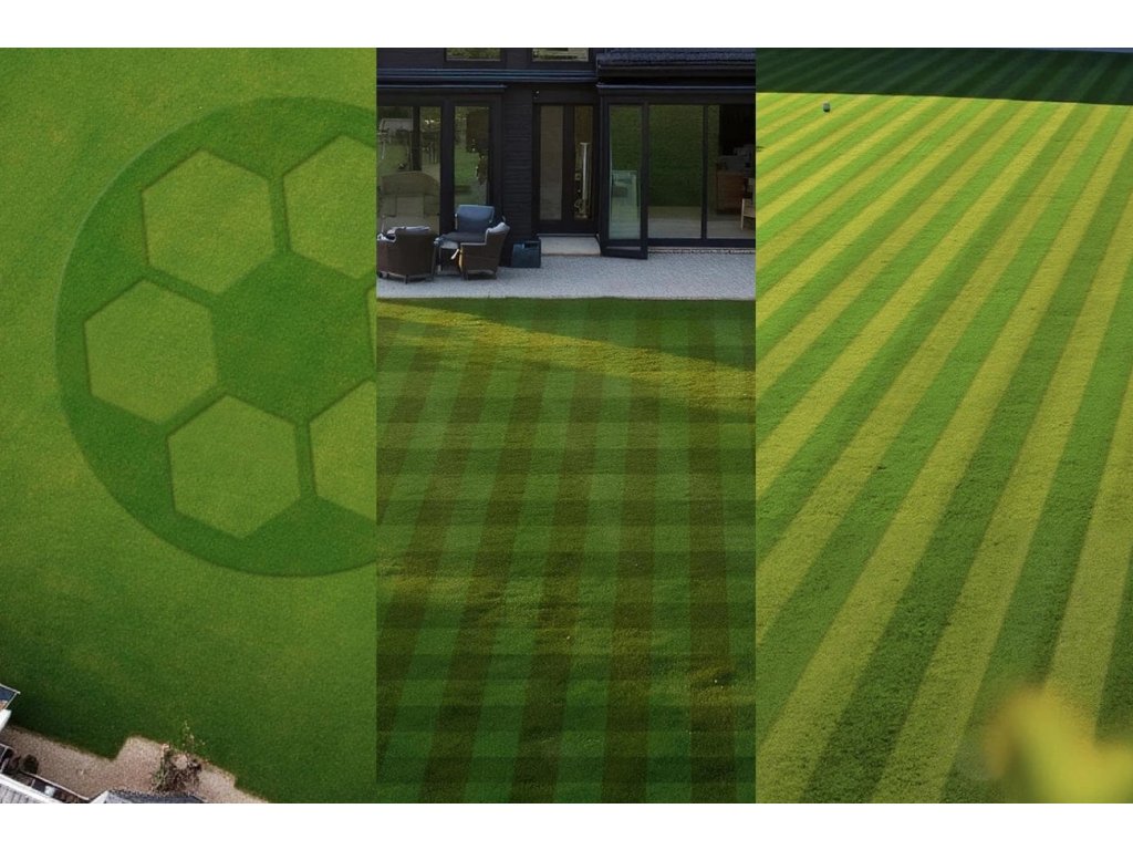 Systematické sečení v pruzích – organizovaný způsob sekání zajišťuje rovnoměrné pokrytí celé plochy a profesionální vzhled trávníku.