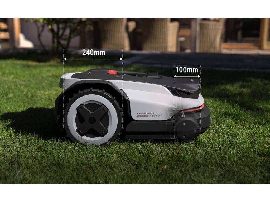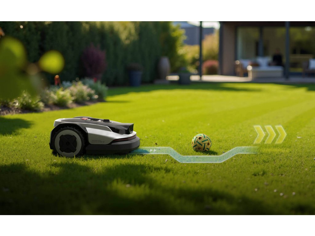 Inteligentní vyhýbání se překážkám – robot dokáže rozpoznat objekty na trávníku, jako jsou hračky, nářadí nebo zahradní dekorace, a bezpečně se jim vyhnout bez nárazů.
