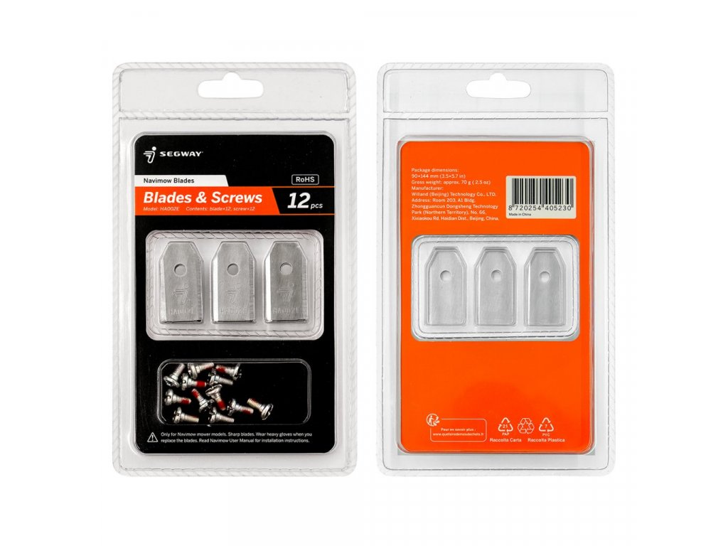 Sada vylepšených a odolnějších nožů pro robotické sekačky Segway Navimow.